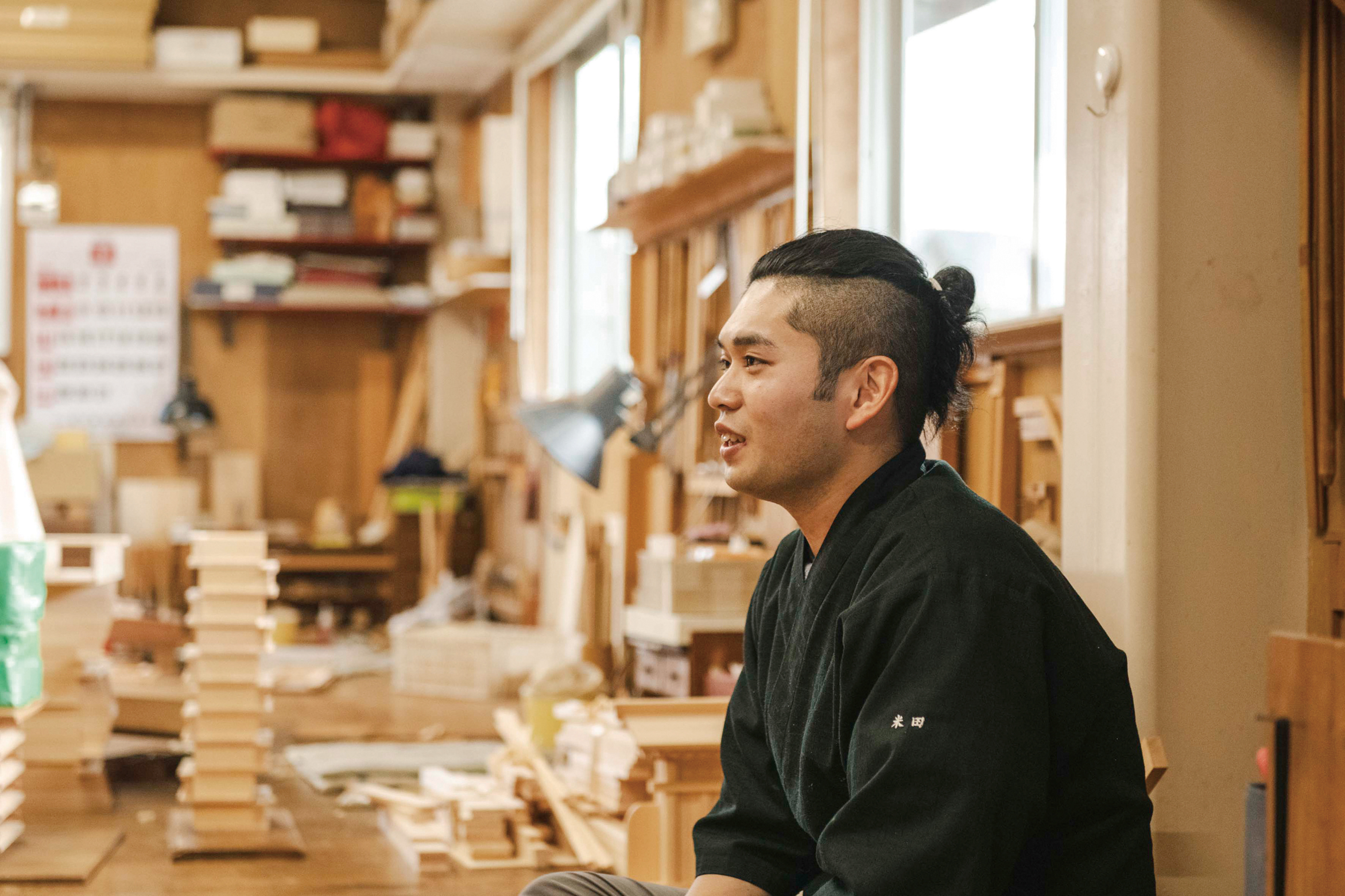 「『自分がせなあかん』という使命感はあったわけではないんです。でも、子どもの頃からここで職人さんとしゃべったり、小さい木があるのでくっつけて遊んだり。ものづくりは結構好きでしたから『それを仕事にできるならいいやん』と思っていました」米田悟さんは神具を作る職人だ。神具とは神棚やお祭りで使う道具のこと。「祖父と父と私の親子3代で仕事をしています。祖父は高齢のため作業はしませんが、祖父の長年の経験によるアドバイスを受け、頼れることはありがたいです」