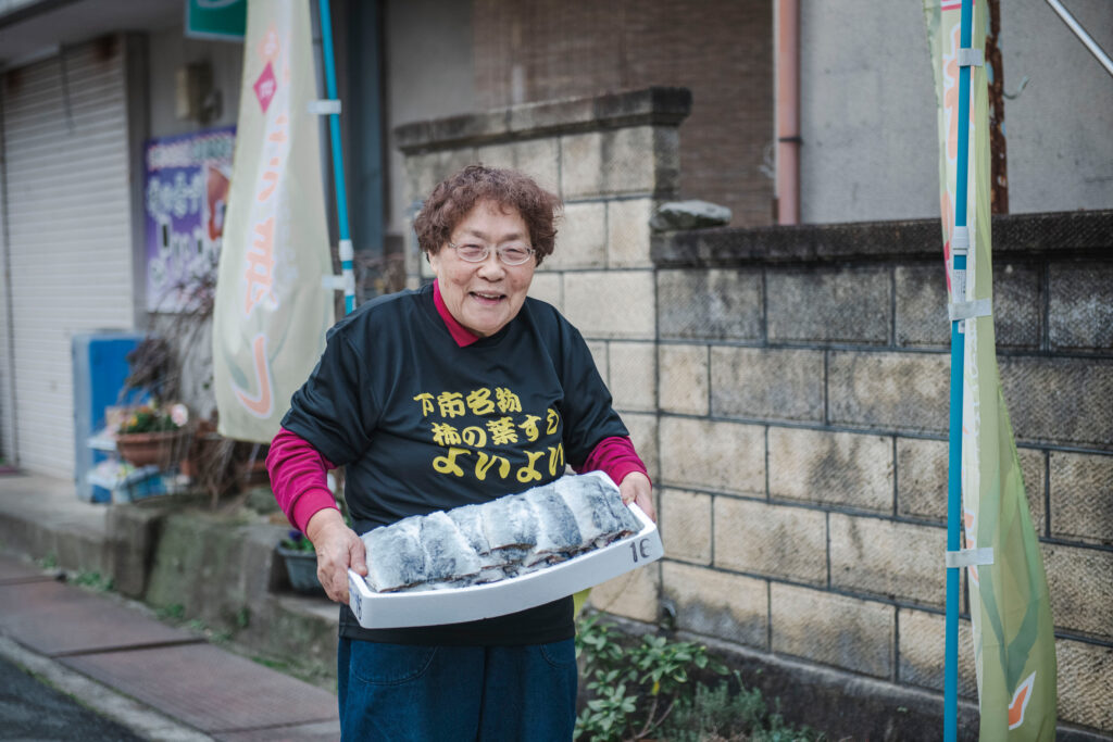 「最初の頃はお弁当と柿の葉すしを少しずつ売っていました。始めたのが平成元年のことですからもう30何年前になるかな」手作り本舗 柿の葉すし よいよいの西村富代さんが本格的に柿の葉すしを専門にし始めたのは12〜13年前からだとか。「当時は近くに工場があって、そこに女工さんが100人ほどいました。その人達がお弁当を買いに来てくれた時、柿の葉すしを作って味を見てもらったんです。何回もやりとりをして、あるときに『あ!おばちゃんこの味、おいしい』と教えてくれたのが、今の味です。うちはどちらかというと甘口と思います」